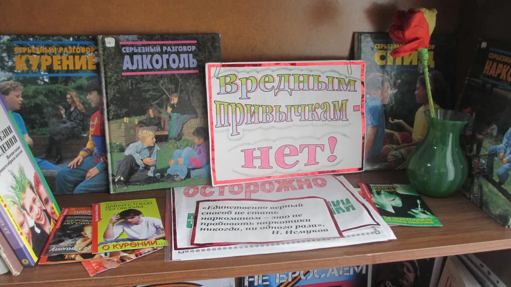 В детской библиотеке посетителей привлекает яркая выставка под названием «Вредным привычкам – нет!!!». Читатели останавливаются, смотрят, делятся впечатлениями. Все они направлены на повышение осведомленности людей о вреде алкоголя и помогают сформировать ответственное отношение к своему здоровью и способствуют формированию здоровых привычек.