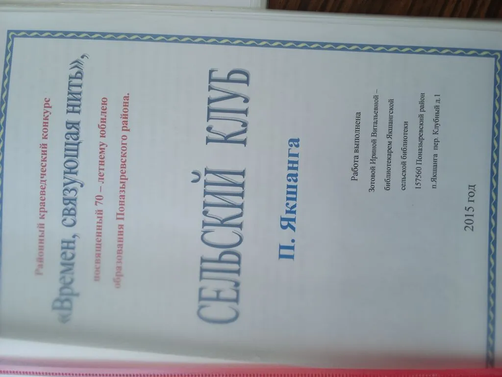 В читальном зале ЦРБ им Куваева О.М. открылась выставка рефератов о малой Родине. Из представленных работ можно узнать историю сельского клуба в п.Якшанга, воспоминания жителей п.Поназырево о том, как развивался поселок, про деревню Луптюжское, про династию заслуженных учителей Сековановых.