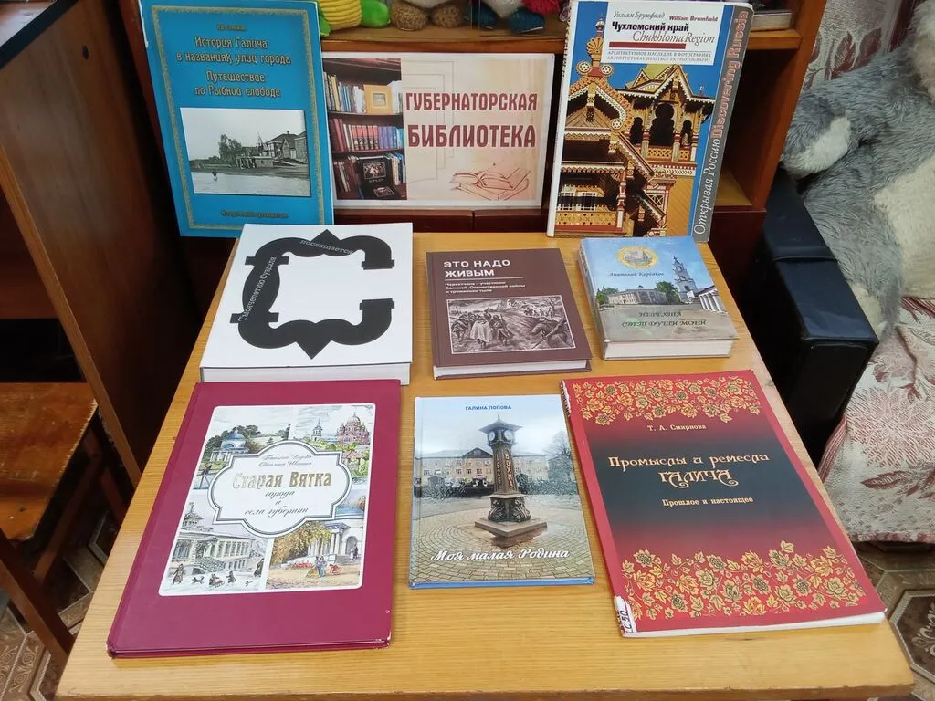 Из представленных книг можно познакомиться с историей городов и поселков области – Нерехта, Суздаль, Галич, Вятка, Вохма, Чухлома, прогуляться по старинным улицам, посмотреть на храмы и церкви, мысленно сфотографироваться у стеллы в Вохме.