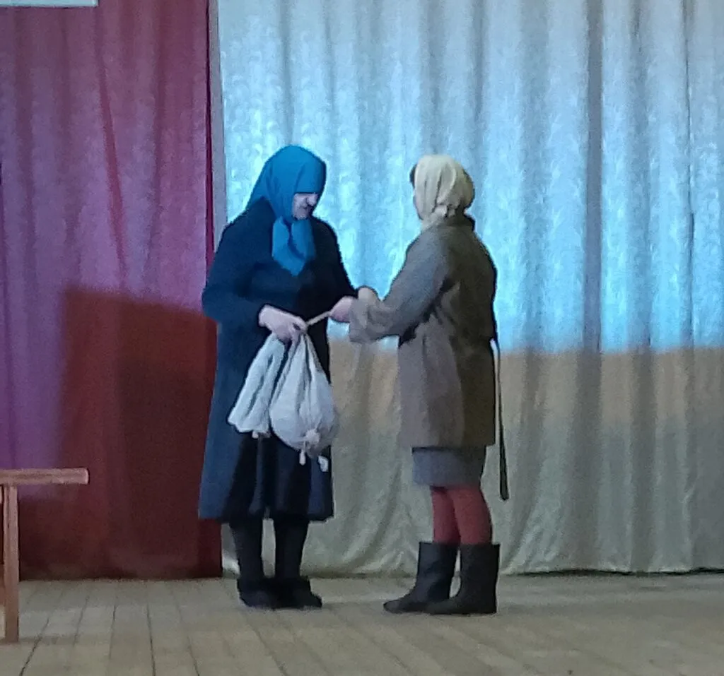 Театральный кружок «Экспромт» под руководством Н. В. Ляминой представил на суд зрителей и жюри проникновенный фрагмент спектакля «Русские женщины» по произведению Светланы Евлановой. В числе исполнителей была и библиотекарь сельской библиотеки.