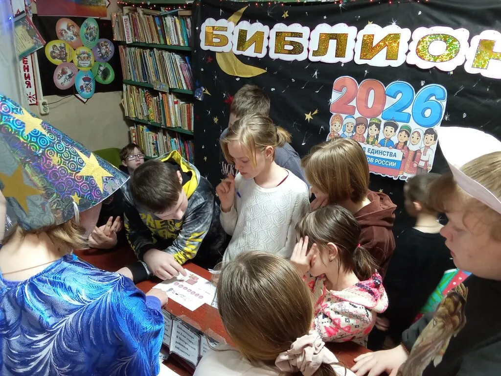 «Библионочь 2026» в этом году посвящена единству народов России. В программу вошло несколько мероприятий, посвященных истории и традициям народов нашей страны. В фойе библиотеки гости играли в традиционные игры: башкирская «Юрта», финно -угроская «Йыкке – калдале», «Асык ату» — казахская национальная игра и в «Ручеек». Юные читатели приняли участие в интеллектуальной игре «Народов много – страна одна», состоящей из нескольких станций, каждая из которых содержала задания и вопросы на знание традиций, обычаев, народных инструментов, национальных праздников, жилищ и костюмов российских народов. Для взрослой аудитории праздника прошел исторический экскурс «Сила единства – история и будущее России. Это позволило участникам проникнуться историей и культурой многонациональной России, осмыслить роль народного единства в формировании современной российской государственности. На одной из станций нужно было отсканировать кьюар - код и прочитав сказку, ответить на вопросы. Громкие чтения сказок сменялись просмотром мультфильмов из цикла «Гора самоцветов», что позволило не только услышать, но и увидеть особенности национального фольклора. Также можно было сделать красивые фотографии возле фотозоны.