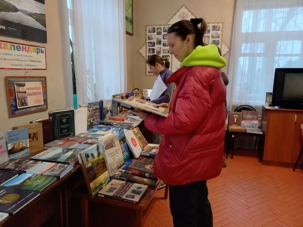 На экскурсии передвижного выставочного проекта «Губернаторская библиотека» присутствующие узнали о разнообразии книжного фонда, подаренного губернатору.
